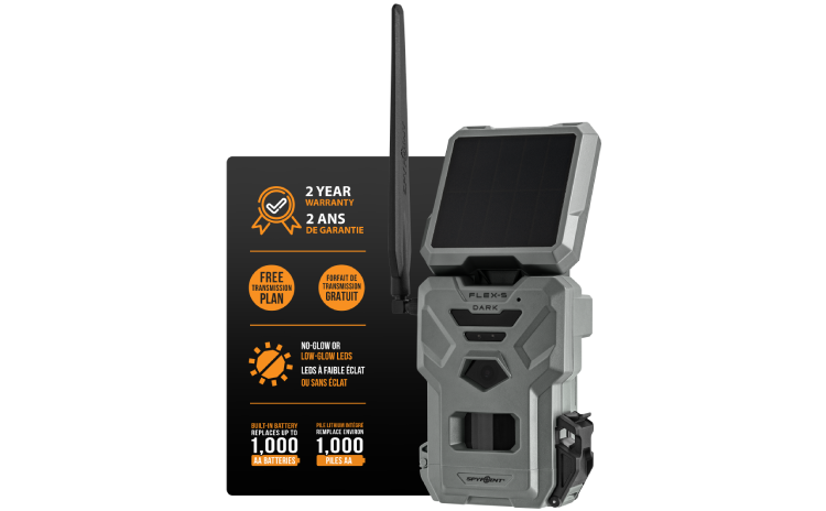 La FLEX-S-DARK de SPYPOINT est la caméra de chasse cellulaire ultime pour les chasseurs et gestionnaires de territoire qui veulent garder un œil sur leur secteur sans interruption. Grâce à son panneau solaire intégré et sa pile rechargeable au lithium, elle reste active en continu et transmet photos et vidéos sur demande via le réseau LTE. Sa technologie de détection BUCK TRACKER exclusive, ses LED sans éclats et ses options de capture avancées en font un outil de surveillance discret et performant.